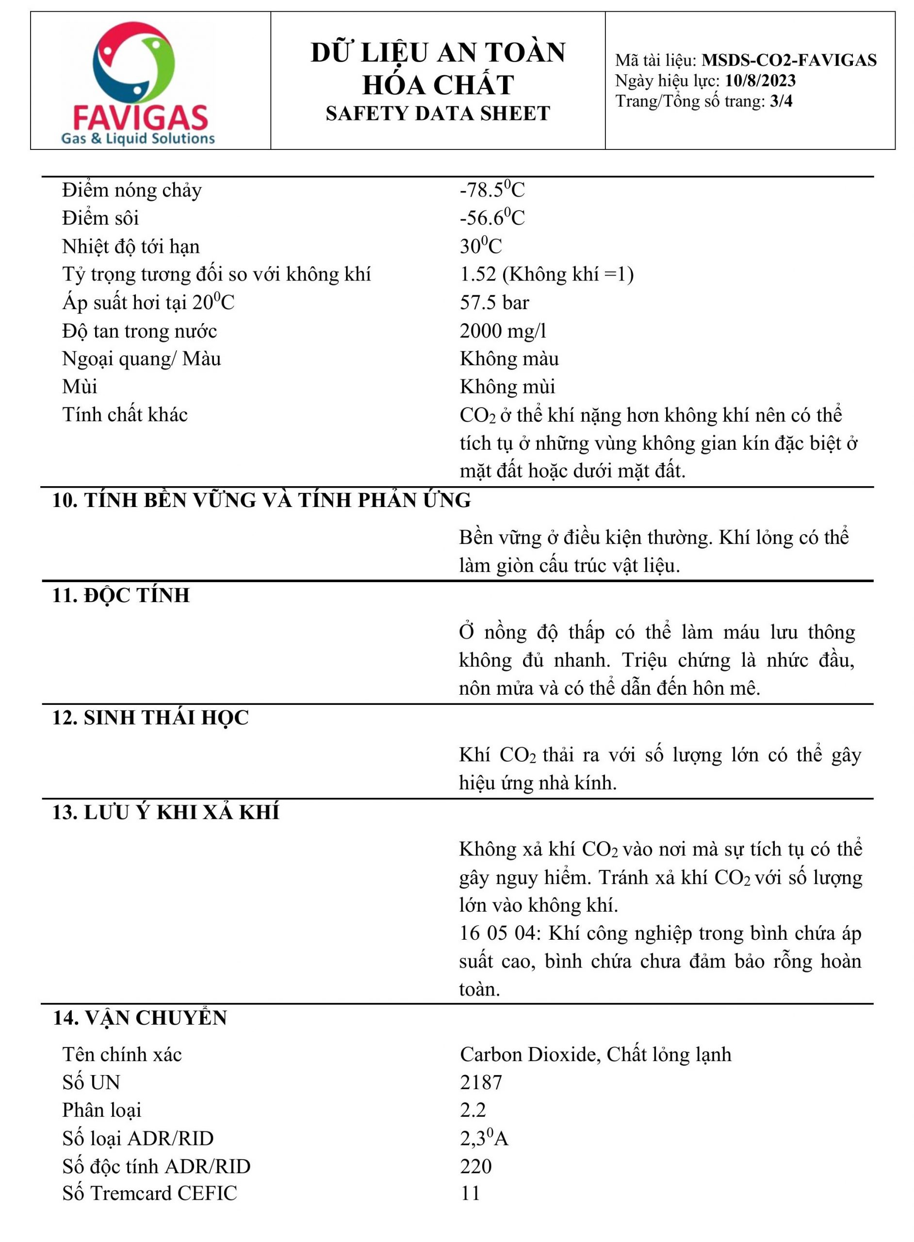 MSDS – CO2 – FAVIGAS – VIETNAMESE – 03 Published 27 Tháng Mười, 2024 at 1884 × 2560 in Dữ liệu an toàn hoá chất CO2 – MSDS CO2 ← PreviousNext →