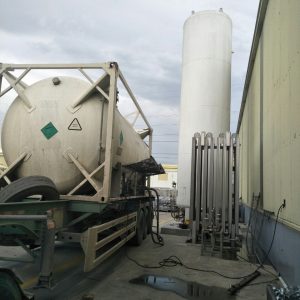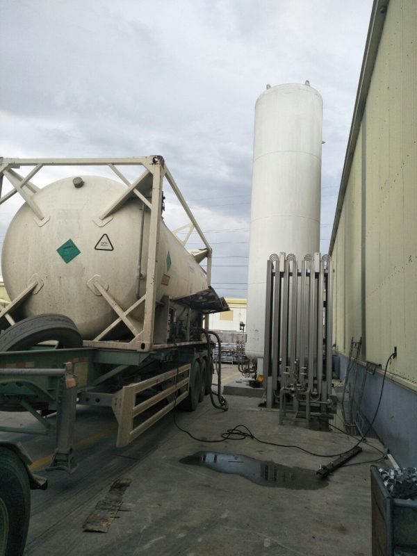 - Bước 8: Khi áp suất xe bồn lớn hơn áp suất bồn chứa từ 3 bar trở lên, mở van đáy xe bồn tiến hành nạp khí lỏng từ xe bồn sang bồn chứa